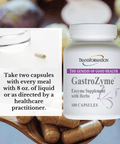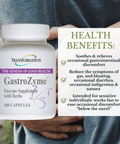Gastrozyme uniquely combines a broad‑spectrum enzyme blend with soothing herbal ingredients, and it is free of protease to ensure gentle support for sensitive individuals which differentiates it from many other products that may be too harsh.*