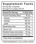 • Gastrozyme operates on a dual approach: first, its enzyme blend (amylase, lipase, and cellulase) works to break down complex carbohydrates, fats, and fibers, improving digestion and reducing gas production; second, the herbal ingredients (such as marshmallow root and papaya leaf) soothe the mucosal lining of the GI tract, promoting healing and reducing discomfort.*